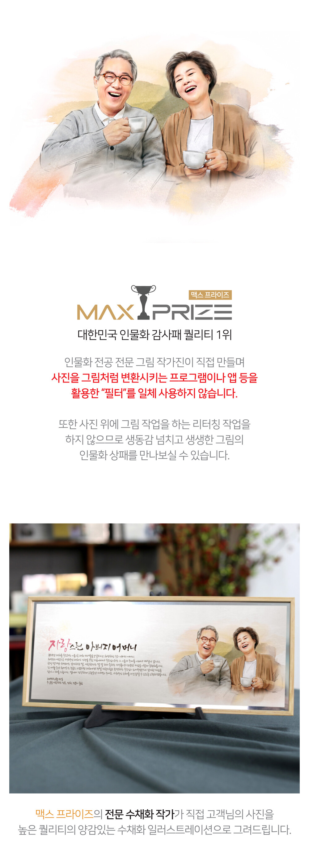 인물 수채화 원목 액자 상패 (BFR09)