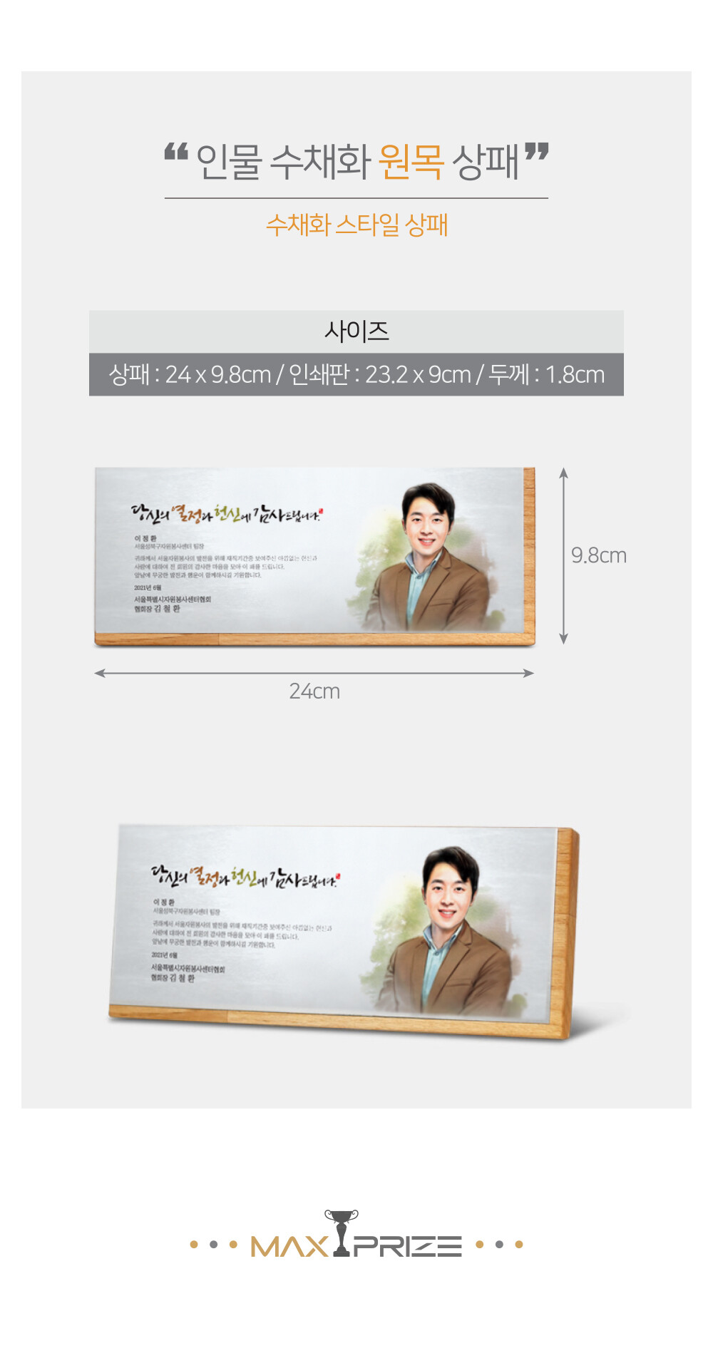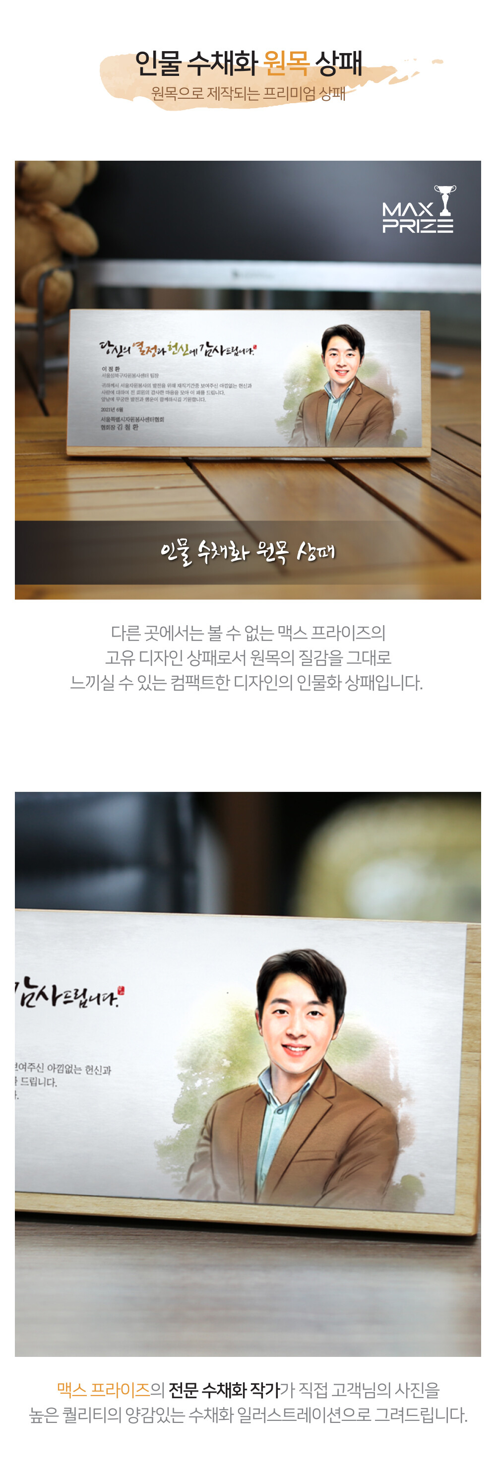 인물 수채화 원목 상패 (BL10)