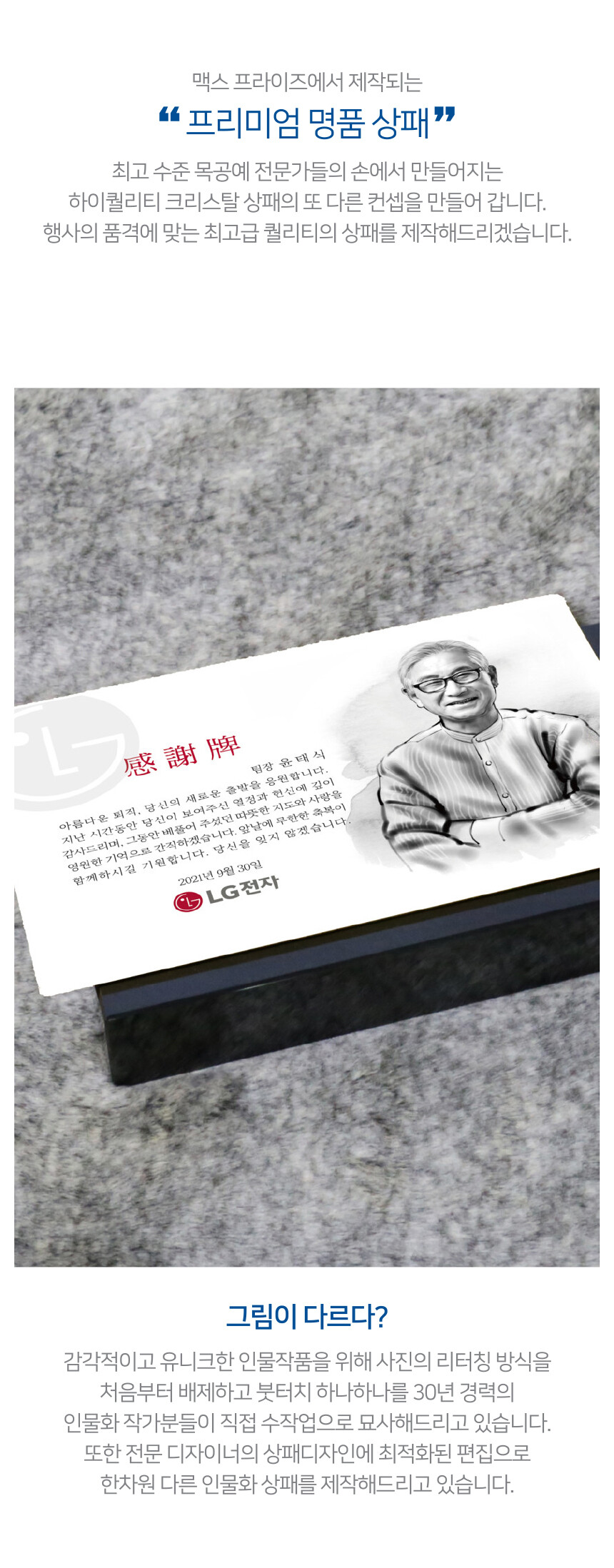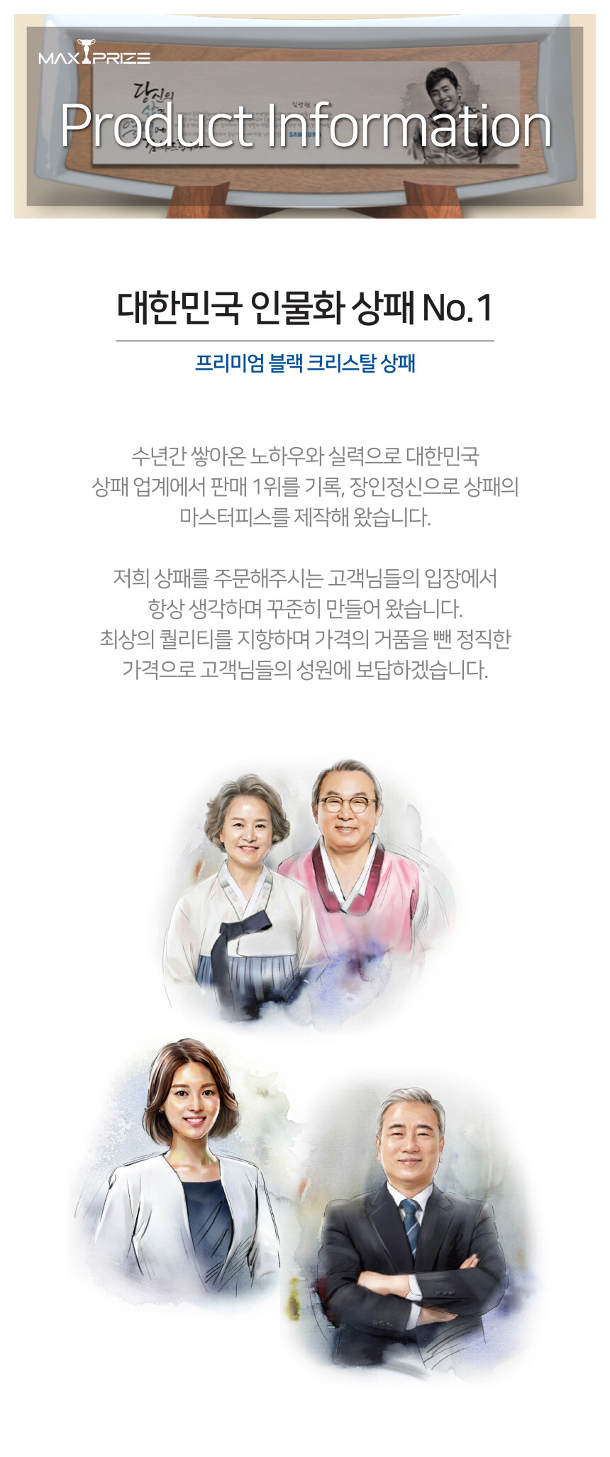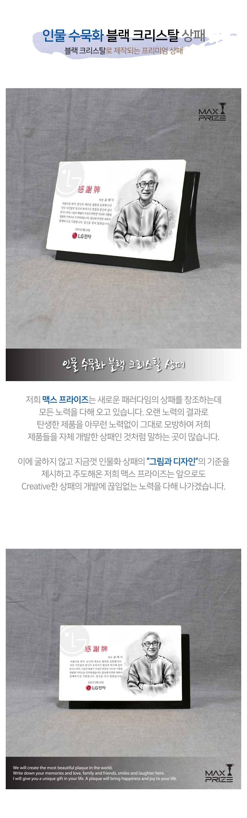 인물 수묵화 블랙 크리스탈 상패 (BT300)