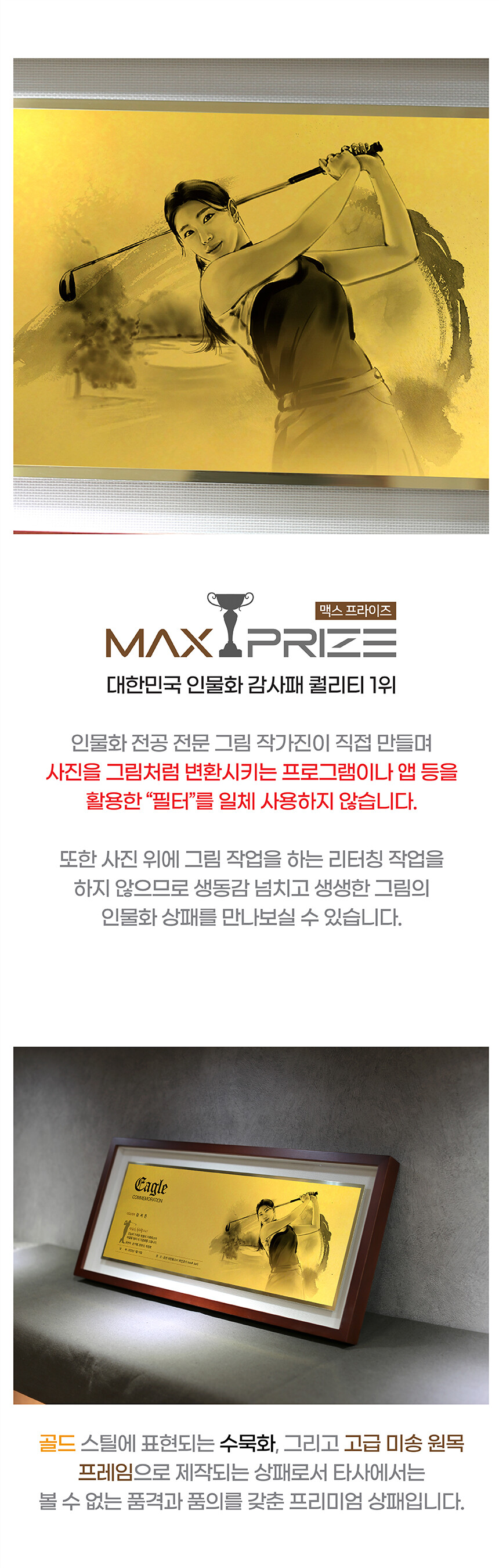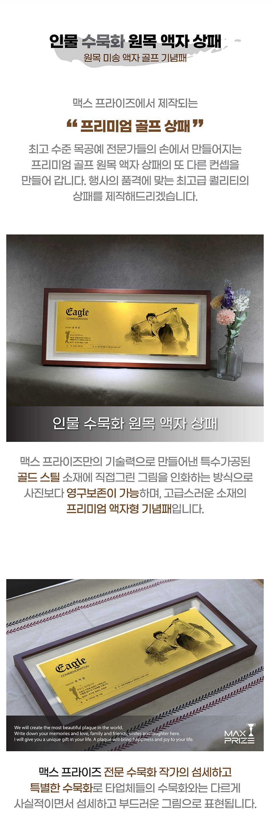 인물 수묵화 원목 액자 상패 (FR5)