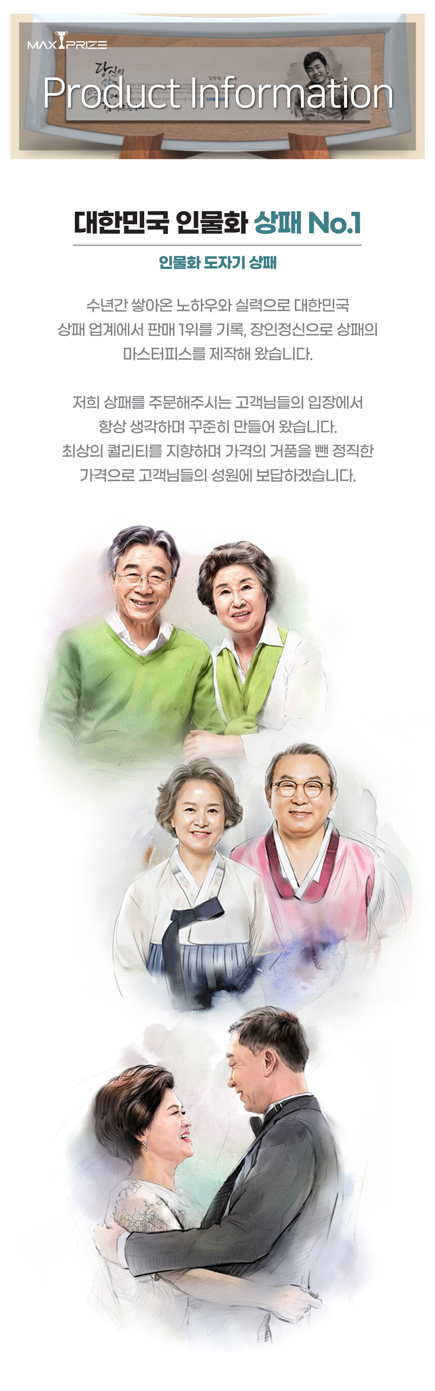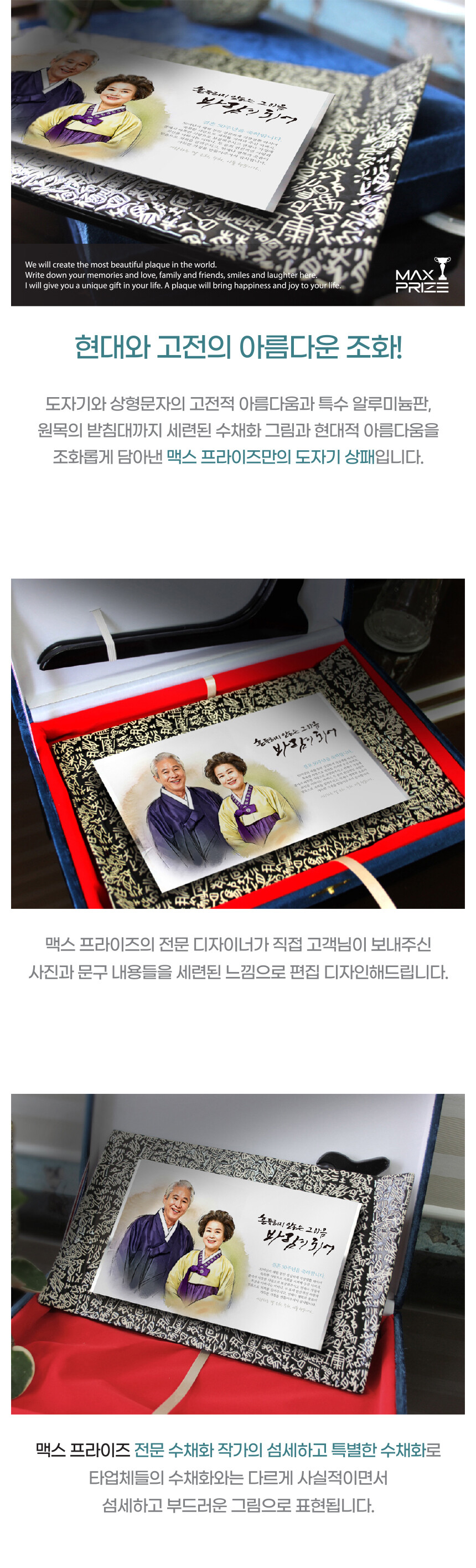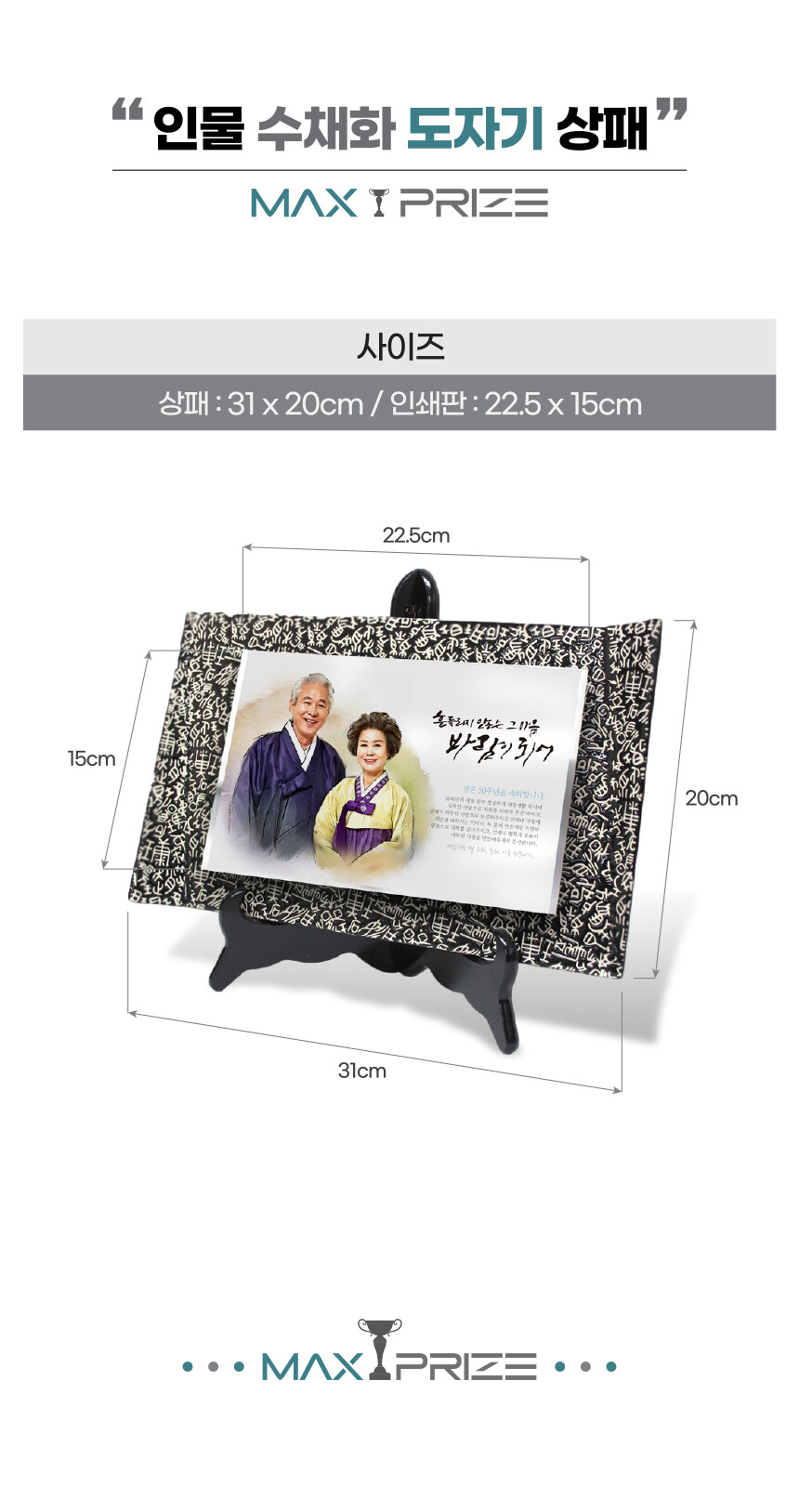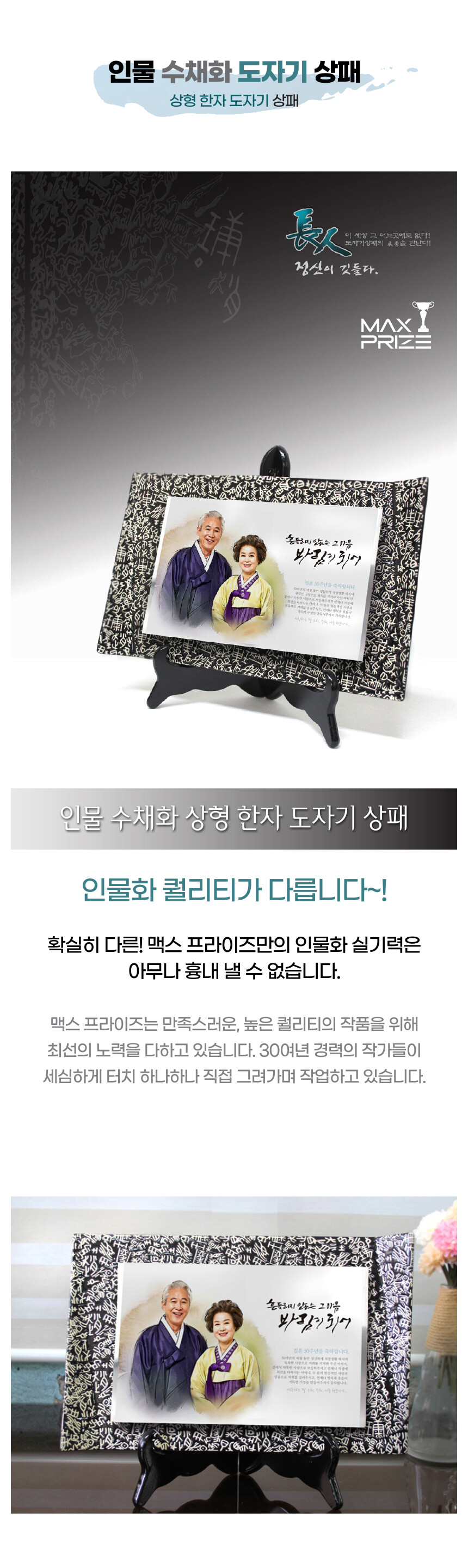 인물 수채화 상형 한자 도자기 상패 (PO1)
