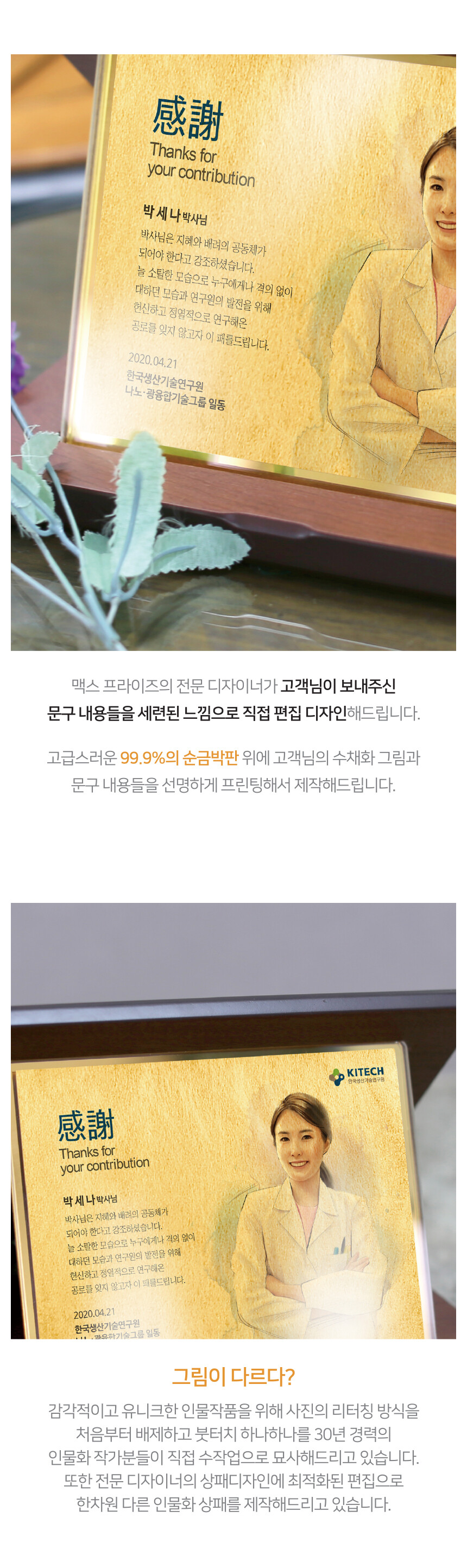 인물 수채화 순금 골드 미러 가리비 상패 (SGM07WC61)