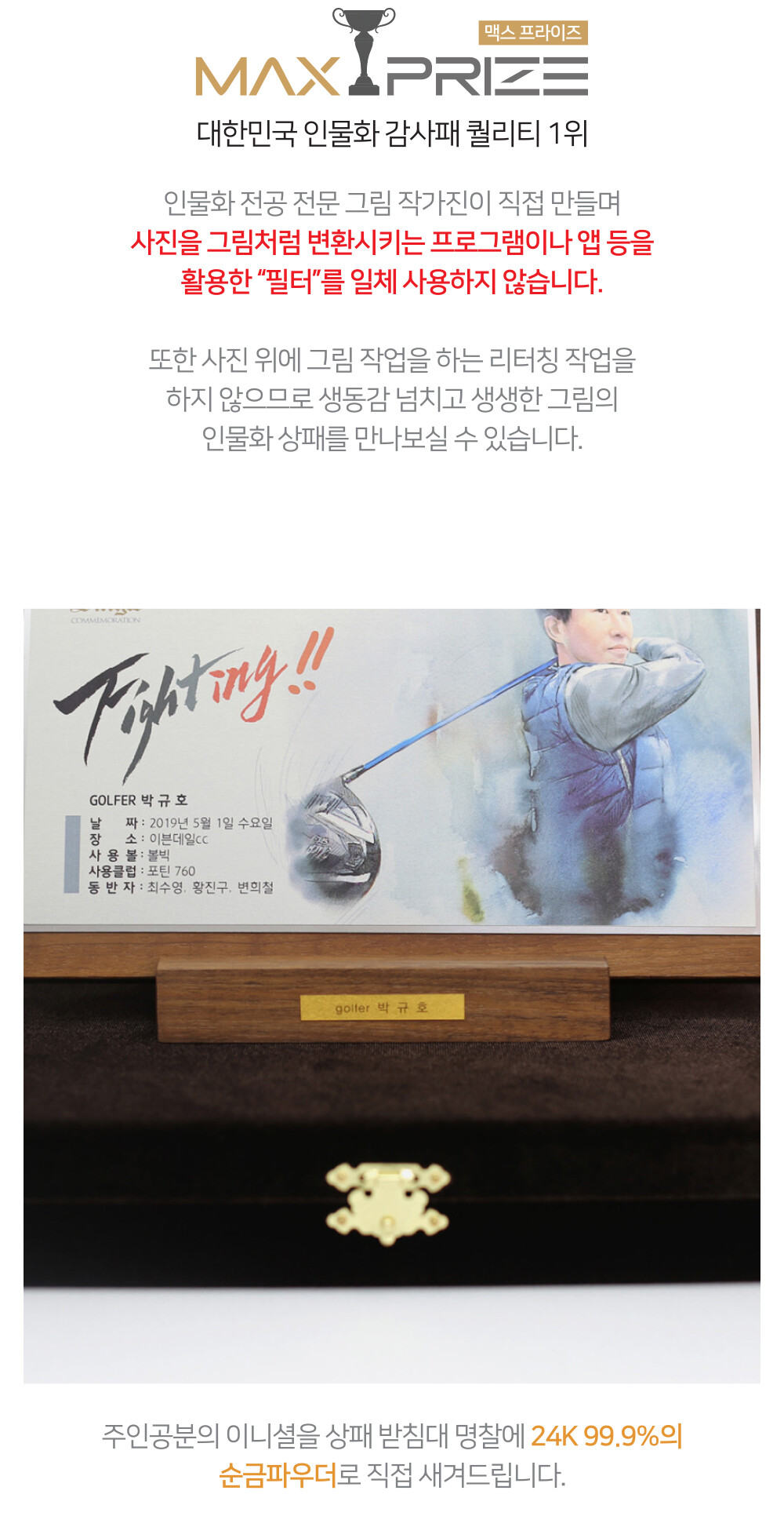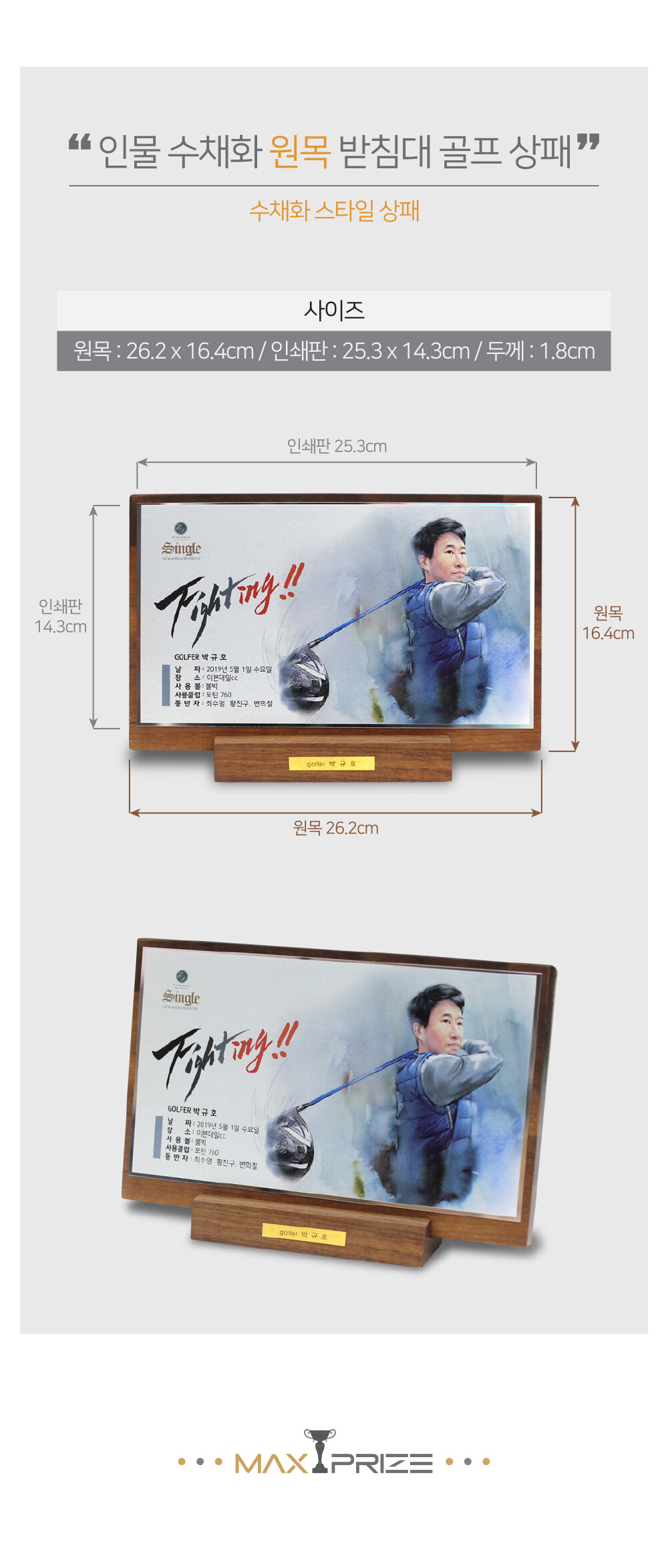 ▣ 제품명 : 인물 수채화 원목 받침대 상패 (BW10)